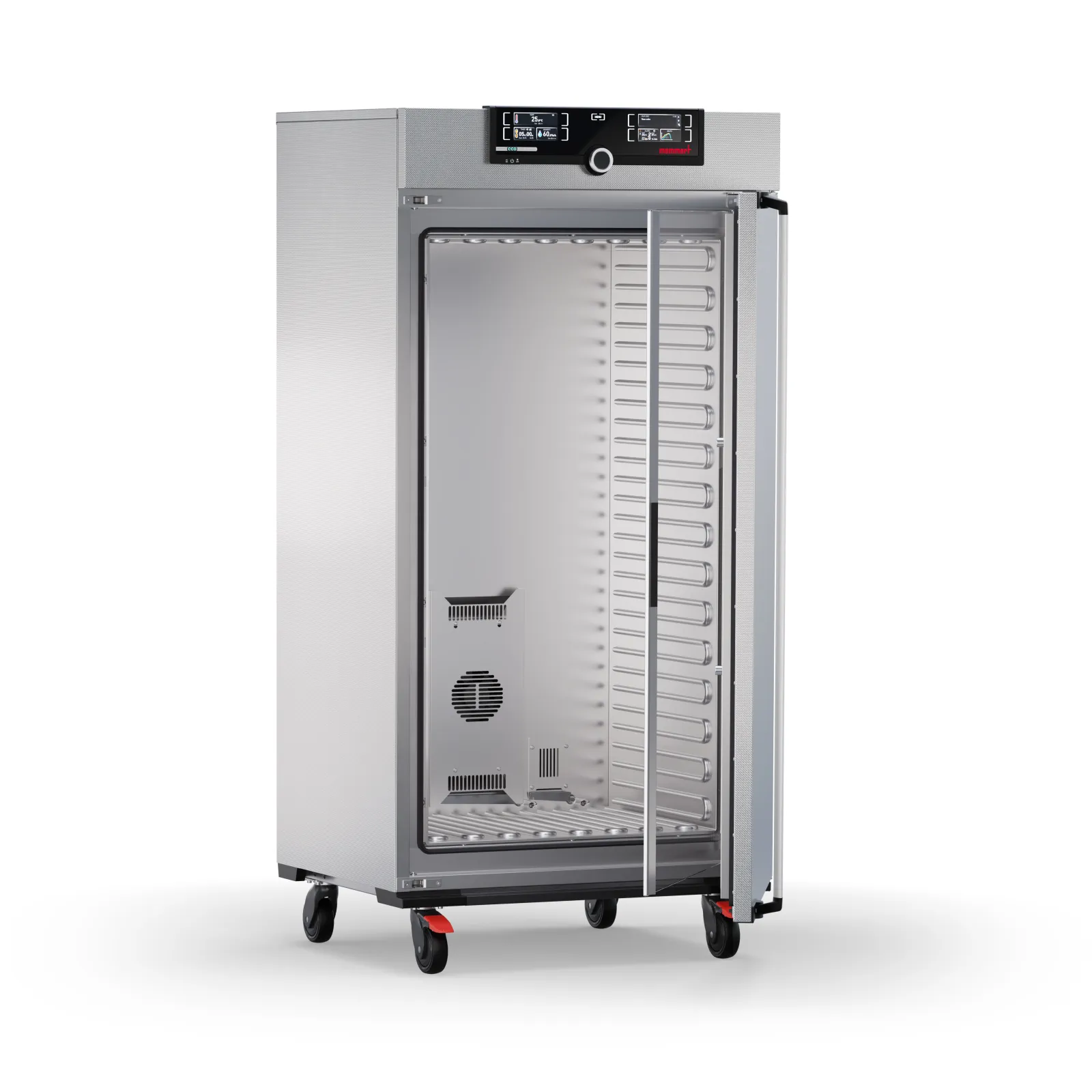 An optimal view of the sensitive load through wide-area interior glass doors (size 1400/2200 stainless steel doors with glass sector; sizes 750, 1060 and 1400 two leaves, size 2200 three leaves) are possible.